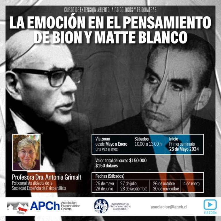 Fundada en el año 1949 por el Dr. Ignacio Matte Blanco, la Asociación es una corporación de derecho privado, que reúne a todos aquellos psiquiatras y psicólogos que han realizado su entrenamiento en el Instituto de Psicoanálisis – su centro de enseñanza e investigación – para ejercer profesionalmente como psicoanalistas.